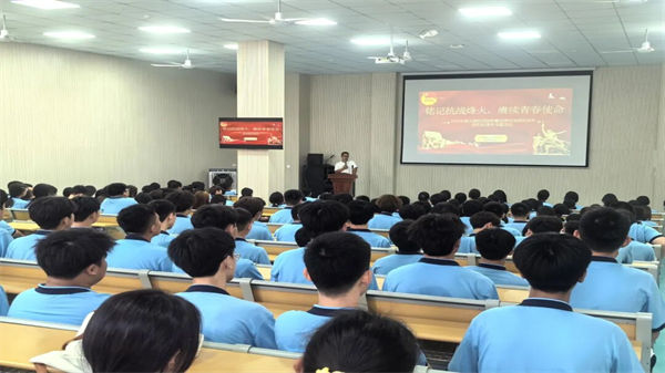 校團(tuán)委副書(shū)記劉超老師以退伍軍人身份,為新生帶來(lái)了一堂生動(dòng)的國(guó)防教育課?!翱箲?zhàn)精神從未過(guò)時(shí),它早已融入我們每個(gè)人的責(zé)任與擔(dān)當(dāng)之中?!眲⒗蠋熃Y(jié)合自身軍旅經(jīng)歷,通過(guò)部隊(duì)訓(xùn)練、執(zhí)行任務(wù)等真實(shí)故事,將“不畏強(qiáng)暴、血戰(zhàn)到底”的抗戰(zhàn)精神與當(dāng)代青年的技能成才使命相銜接。