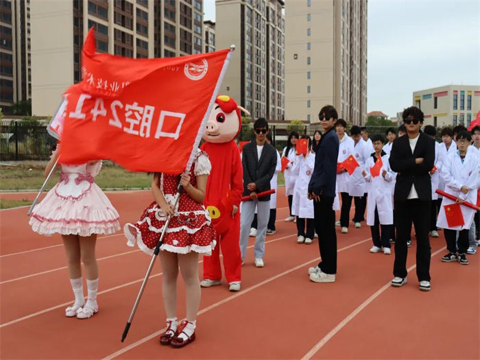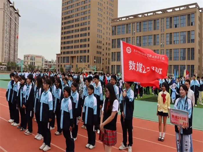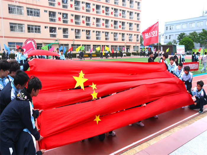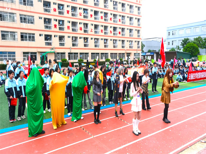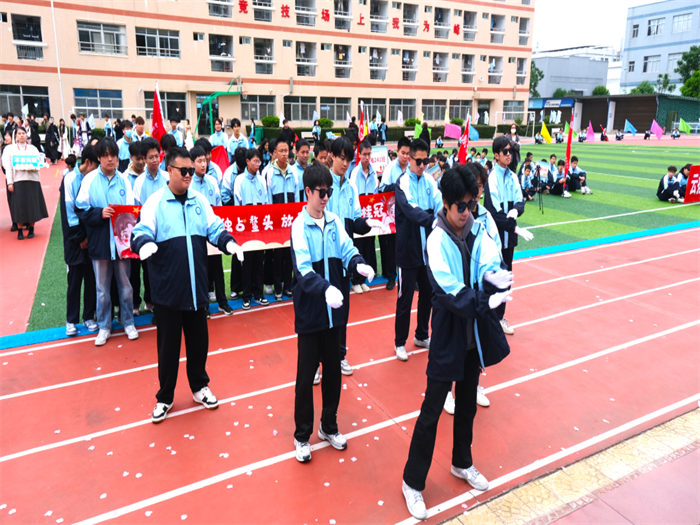 有的班級用紅布翻飛拼出五星紅旗,展現(xiàn)云揚學子的愛國情懷;有的班級組成火箭模型方陣高喊“科技強國”,讓未來感直接拉滿;有的班級結合專業(yè)特色,在班級用舞蹈跳出運動熱潮;有的班級舉著自制標語牌霸氣表白,將文明素養(yǎng)與運動熱情完美融合,成為賽場上一道亮麗的風景線。