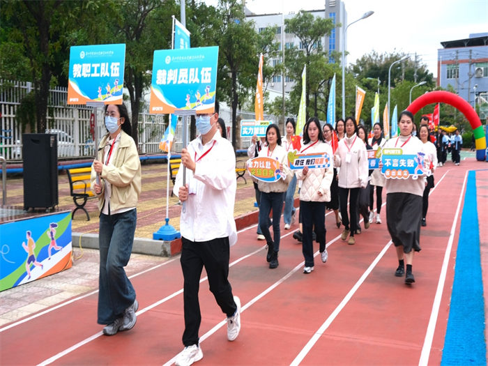 當熟悉的身影邁著沉穩(wěn)的步伐入場,全場響起了熱烈的歡呼——這是教職工方陣!他們平日里是傳道授業(yè)的園丁,此刻是活力滿滿的運動愛好者。筆挺的身姿、堅毅的眼神,每一步都鏗鏘有力,既飽含對運動的熱忱,更彰顯對學子的榜樣力量??粗蠋焸兊娘L采,學子們紛紛舉起手機拍攝,這或許就是“言傳身教”最生動的詮釋!