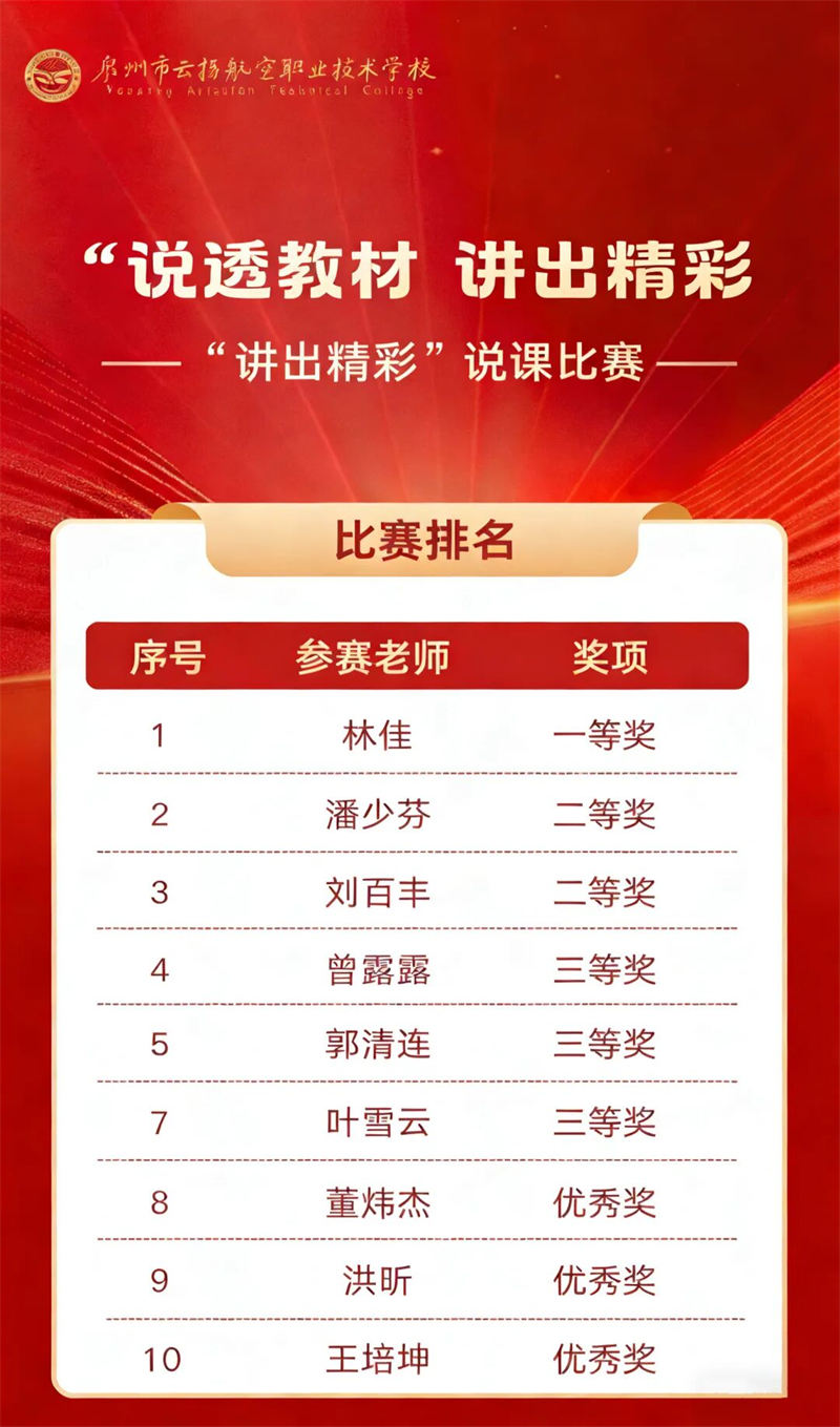 本屆大賽不僅全面檢驗(yàn)并提升了我校教職工的職業(yè)能力與綜合素養(yǎng),更是一次“以賽促教、以賽促改、以賽促建”的生動(dòng)實(shí)踐,營(yíng)造了“比學(xué)趕超、爭(zhēng)先創(chuàng)優(yōu)”的良好氛圍。我校將持續(xù)深化教師隊(duì)伍建設(shè),推動(dòng)教育教學(xué)改革,為職業(yè)教育高質(zhì)量發(fā)展注入持久動(dòng)力。