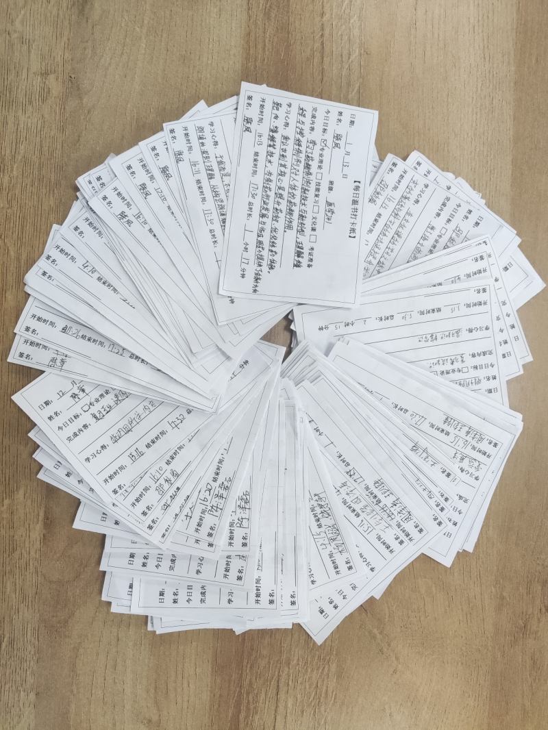 打卡紙上設(shè)置的“心得記錄”欄目,讓每一次突破與反思得以傳遞,實(shí)現(xiàn)了“一人心得,眾人受益”的學(xué)習(xí)共享。